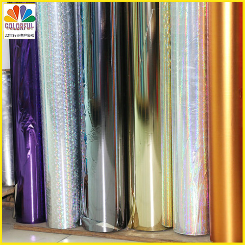 彩色镭射膜 | 现有:草绿色、绿色、浅蓝色、宝蓝色、咖啡黑色、金黄色、浅黄色、深红色、玫瑰红色等颜色的彩色镭射膜,可以按照客要求定制其他颜色.目前彩色镭射膜适合生产各种纸类产品! | ||