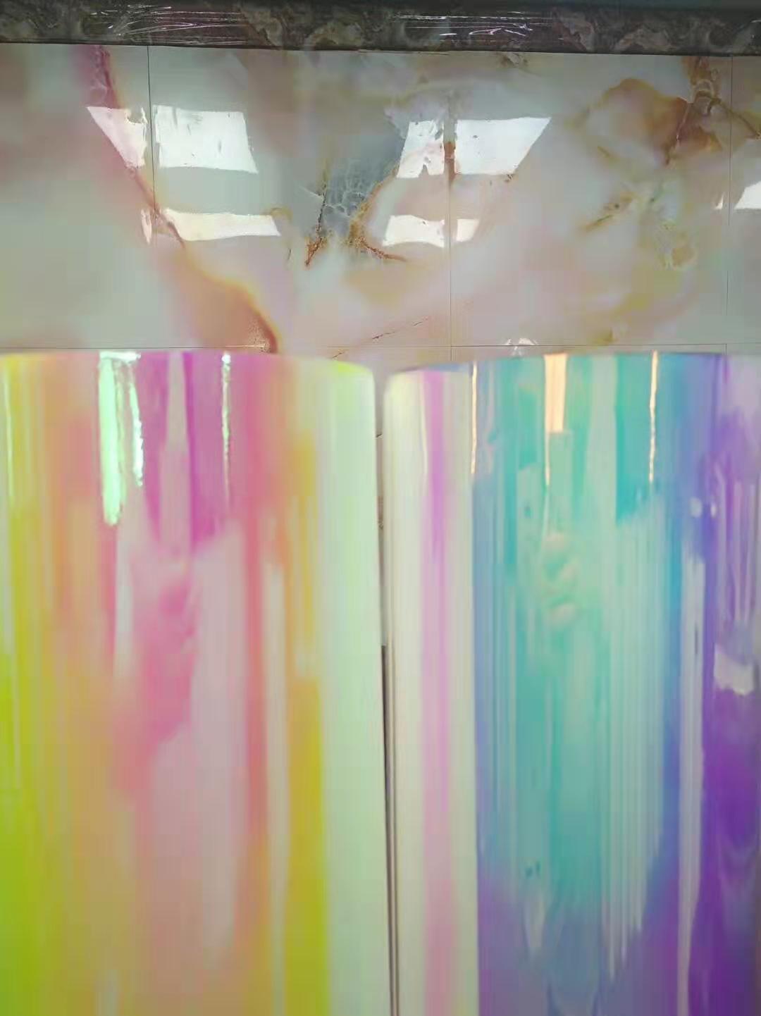 灯具彩虹膜:将镭射膜卷起来,使用用灯光在里面照射出现七彩色泽,像彩虹状,一般用于灯具表面装饰。